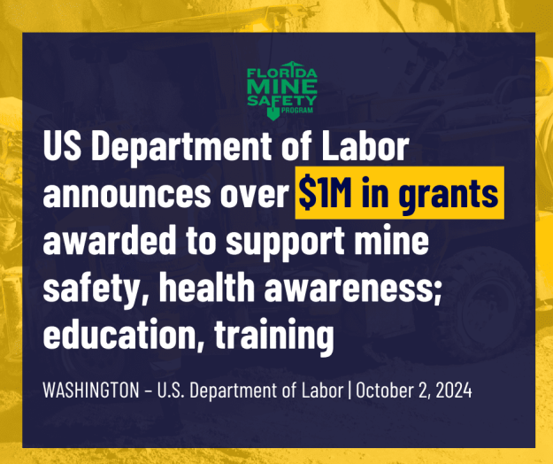 US Department of Labor announces over $1M in grants awarded to support mine safety, health awareness; education, training